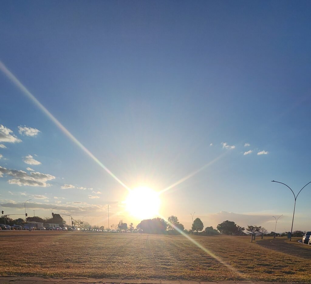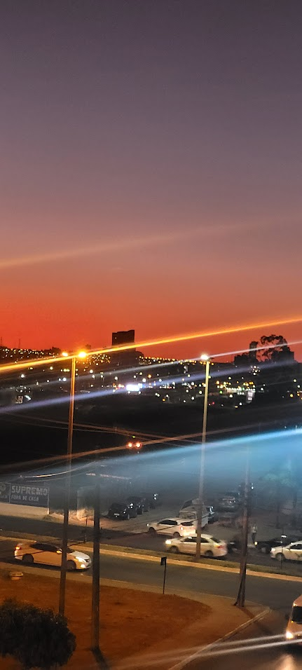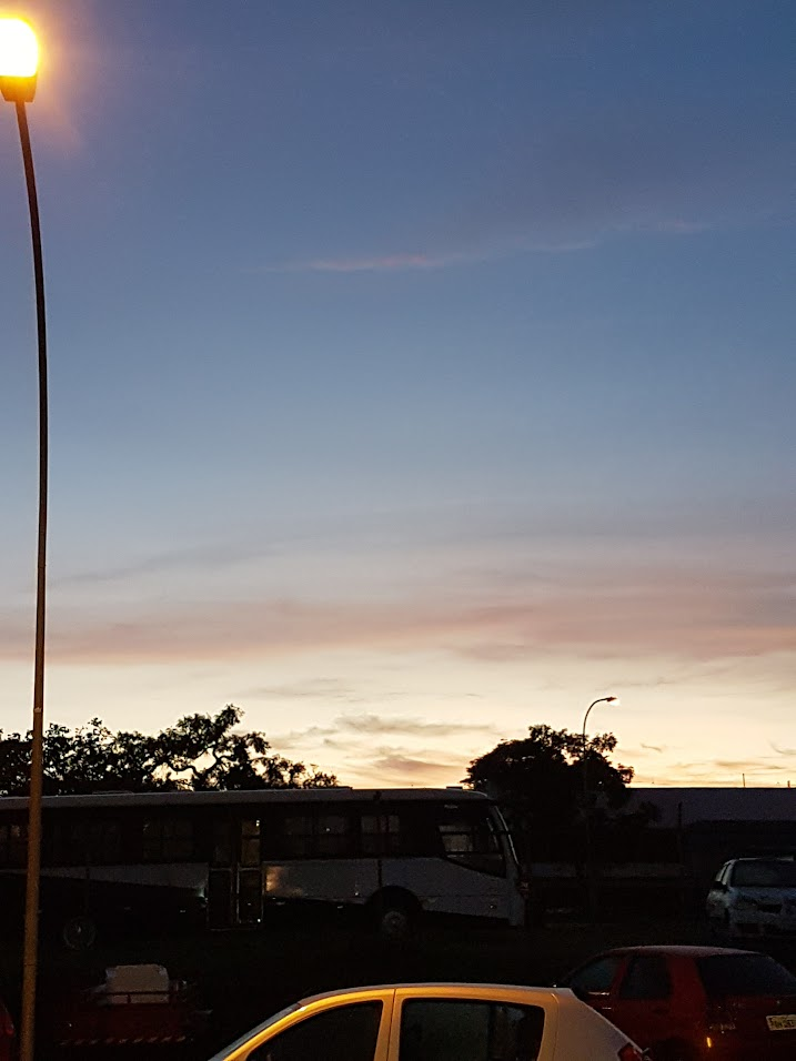 A escolha das cores laranja e azul não foram por acaso… Elas representam uma das mais belas paisagem que temos em Brasília: o céu azulado e o fim de tarde laranja que muitos gostam de acompanhar em diversos pontos do quadradinho (na época que não chove, é claro!)